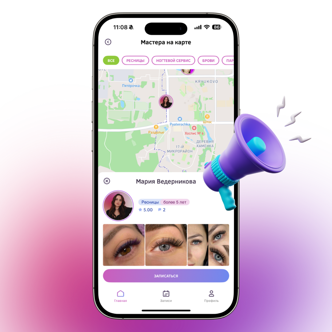 Приложение делает ваш профиль видимым на карте города, что особенно важно для начинающих мастеров или тех, кто хочет увеличить поток клиентов. Потенциальные клиенты смогут увидеть ваше портфолио, контактные данные и даже отзывы прямо в приложении. Это удобно, быстро и эффективно для продвижения ваших услуг.
